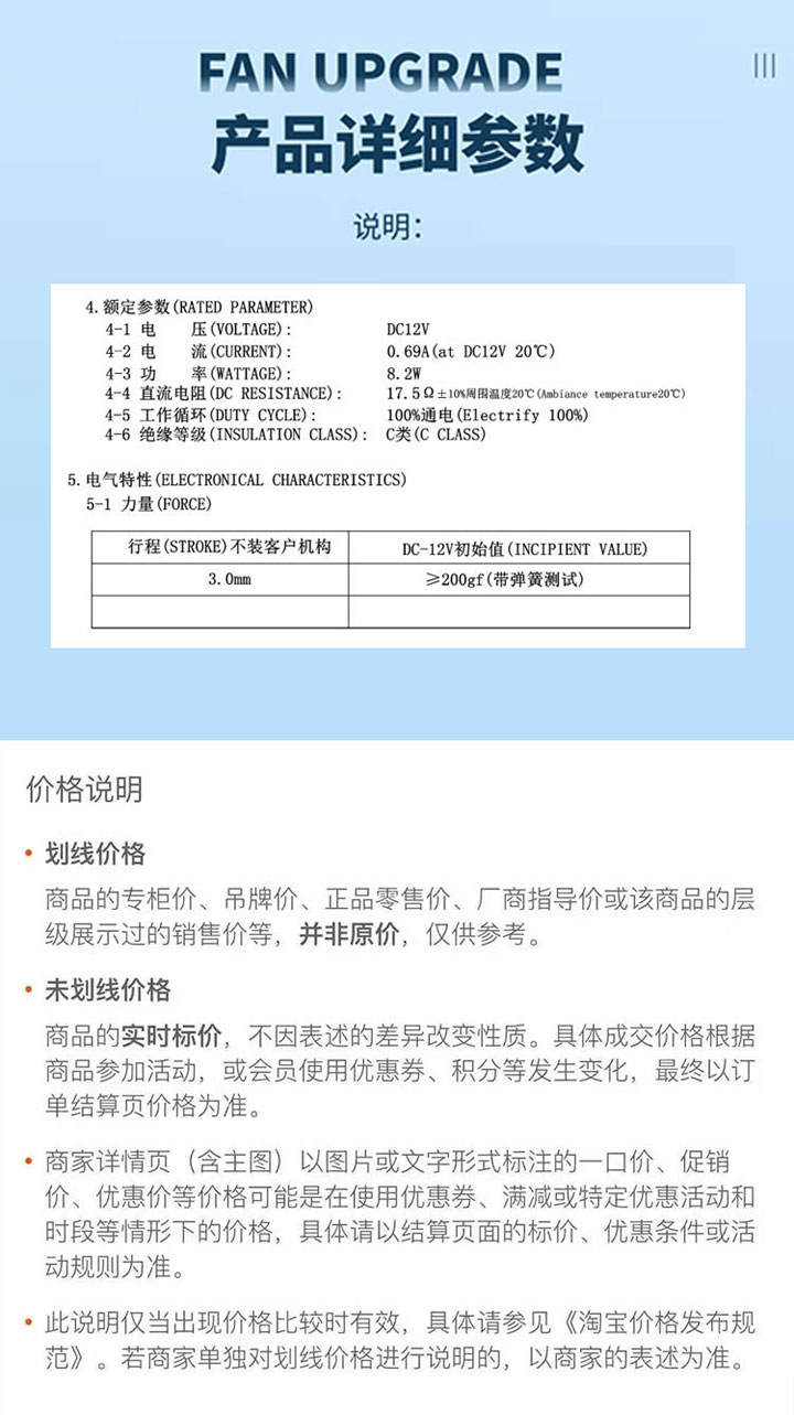 耐溫: 壽命: 耐電壓: 初始力: 200gf